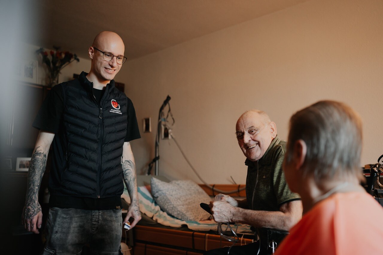 Nach dem Aufnahmegespräch und der Klärung aller zeitlichen und organisatorischen pflegerischen Maßnahmen starten wir umgehend mit der Versorgung. Sie werden sodann von unseren liebevollen Pflegekräften versorgt. Selbstverständlich kann die Versorgung auch zu einem von Ihnen vereinbarten Zeitpunkt, beispielsweise bei noch bestehendem Aufenthalt in der Klinik oder der Kurzzeitpflege, beginnen. Wir richten uns in diesem Fall ganz nach Ihnen!